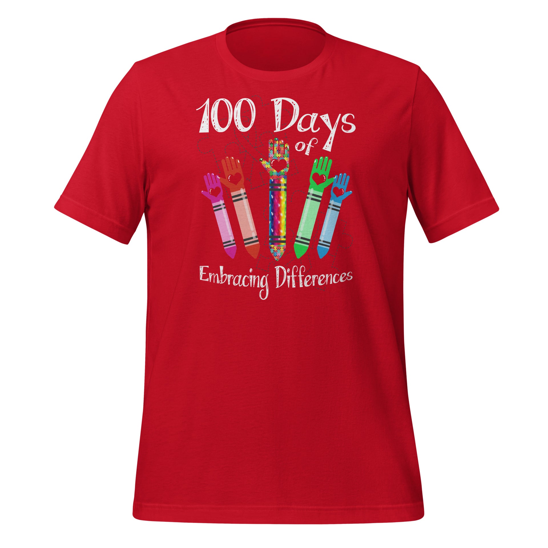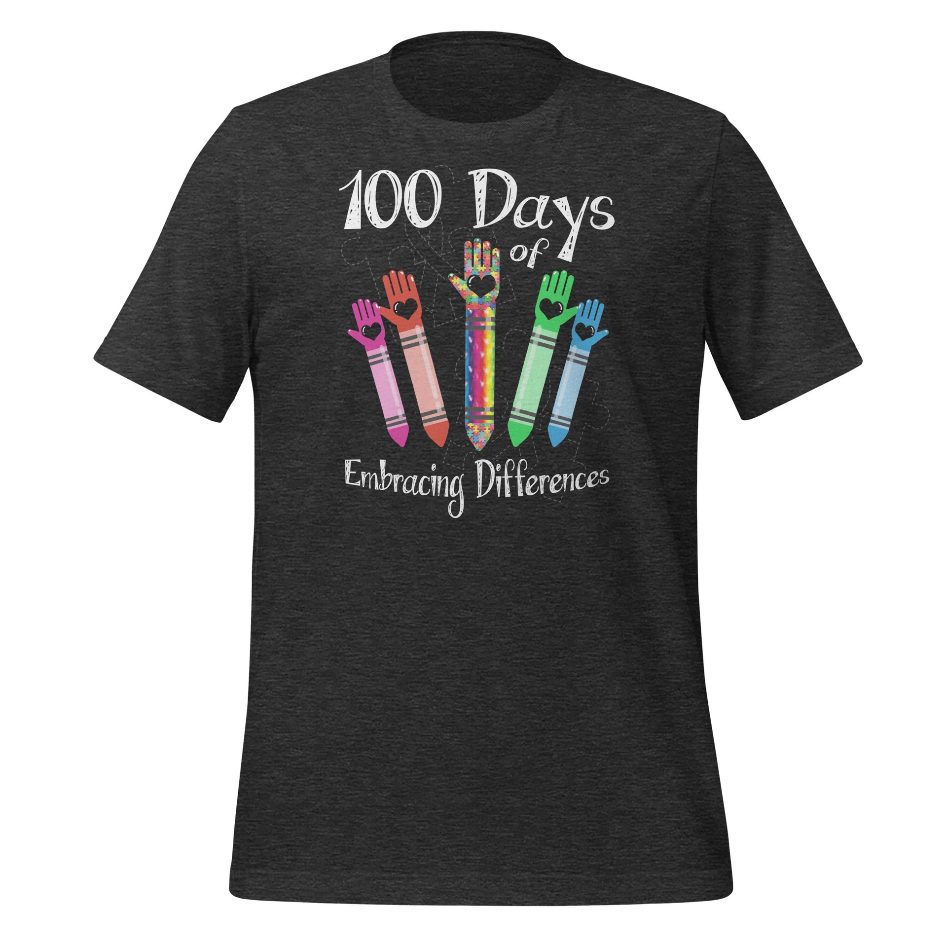 100 Days Of Embracing Differences - Autism Awareness Autistic Teacher Short-Sleeve Unisex T-Shirt