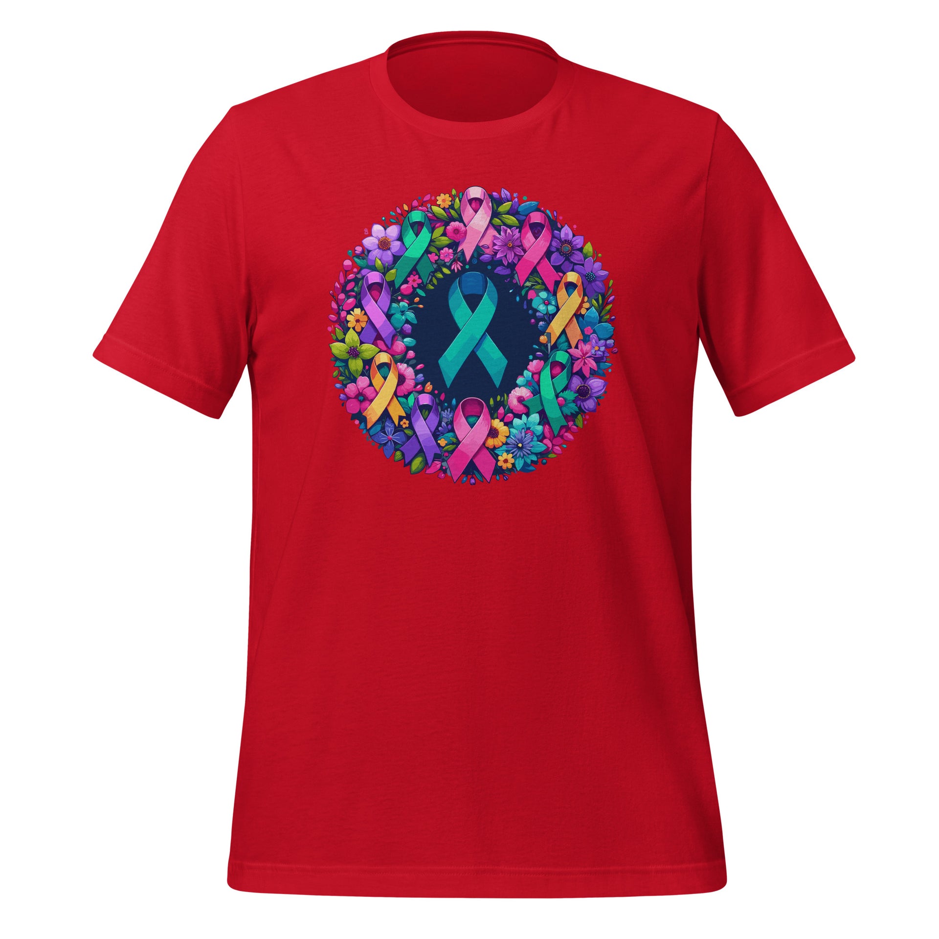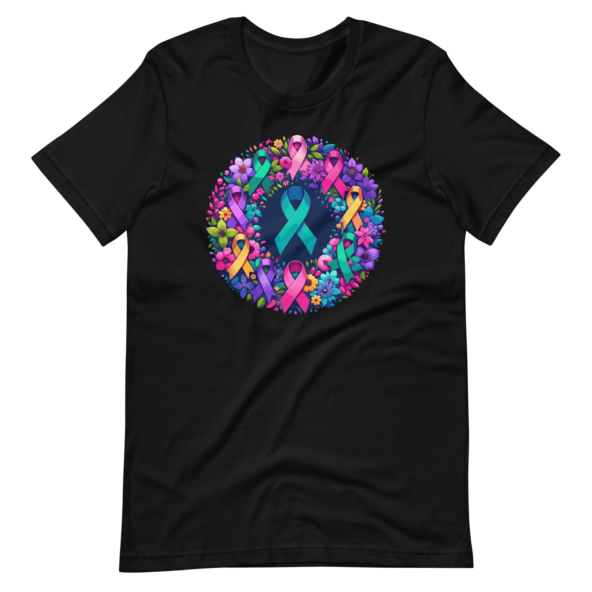 Cancer Awareness Multi-Color Ribbons Hope Wreath Unisex T-Shirt