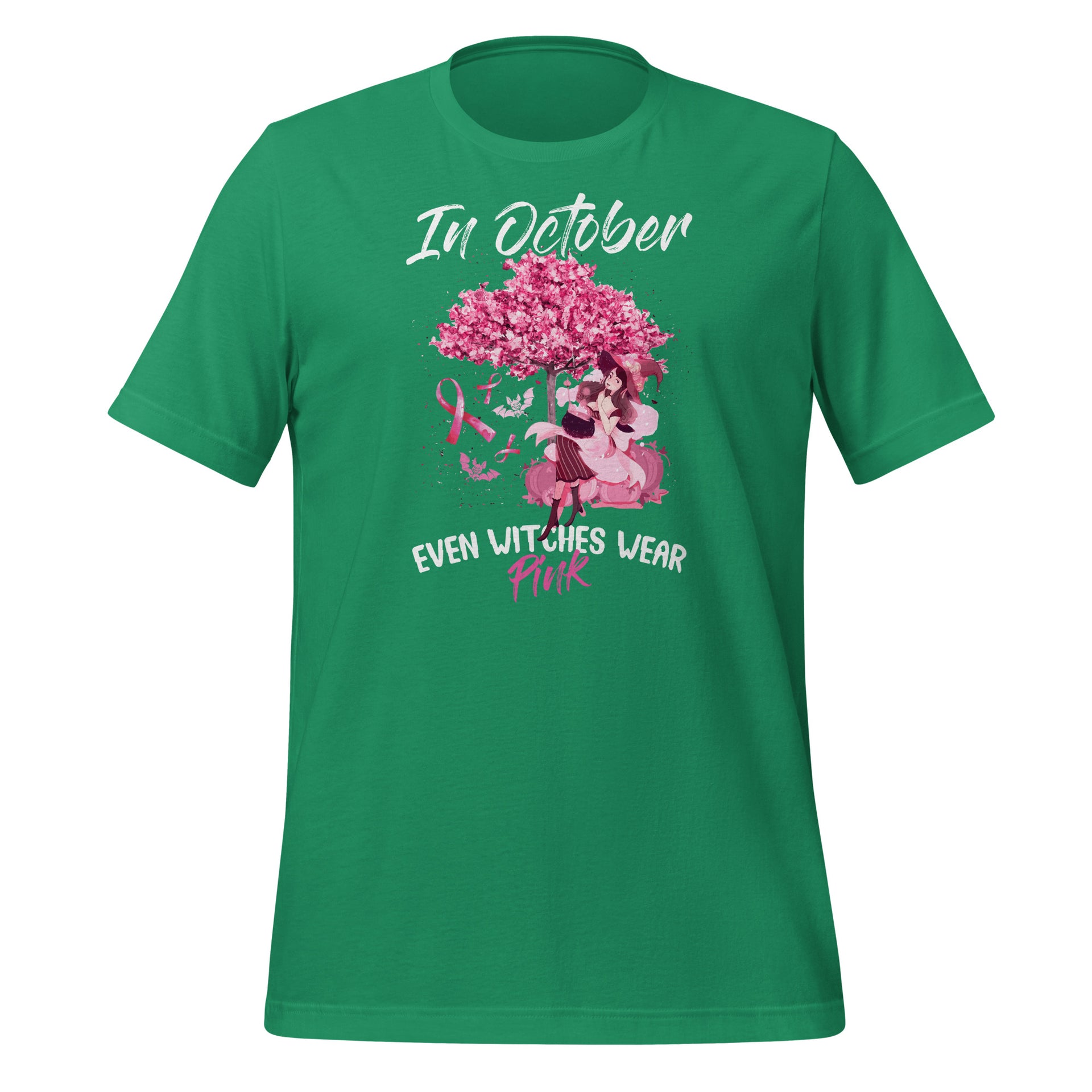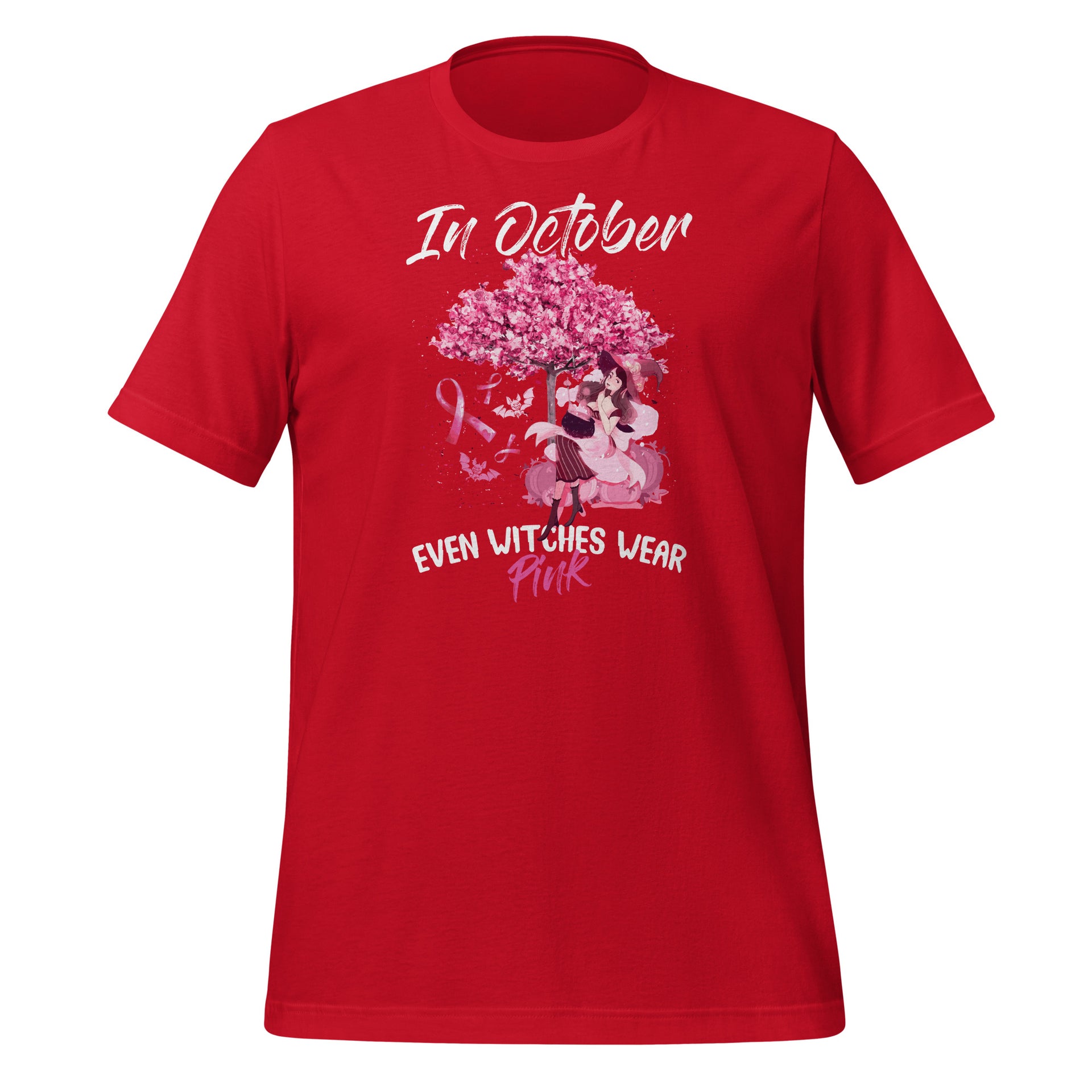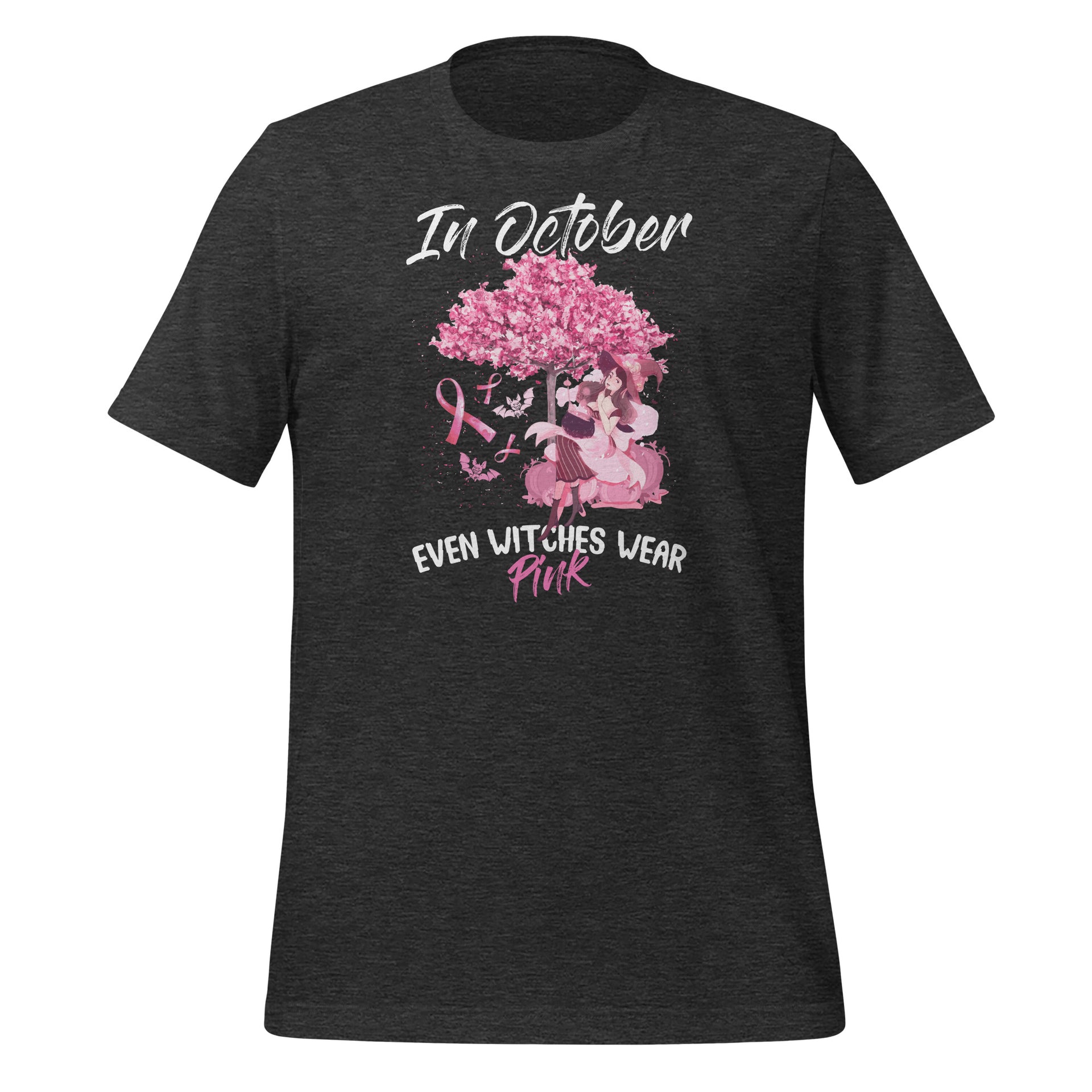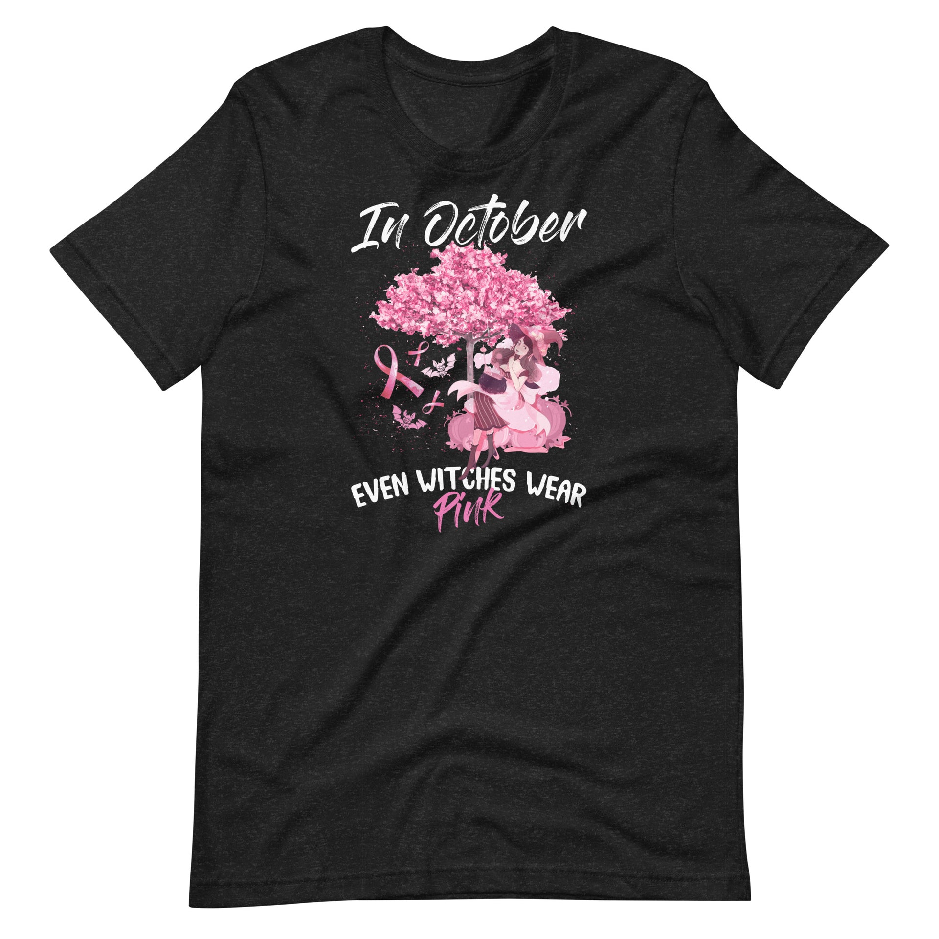 In October Even Witches Wear Pink - Breast Cancer Awareness Short-Sleeve Unisex T-Shirt